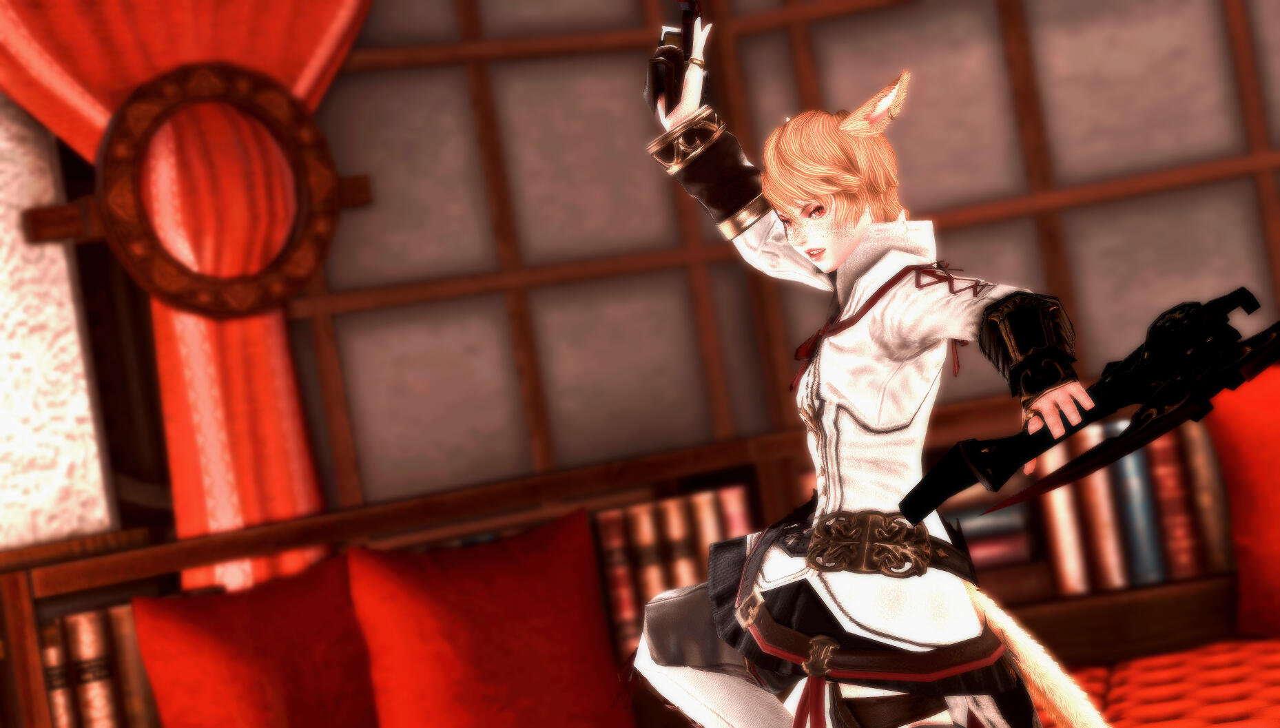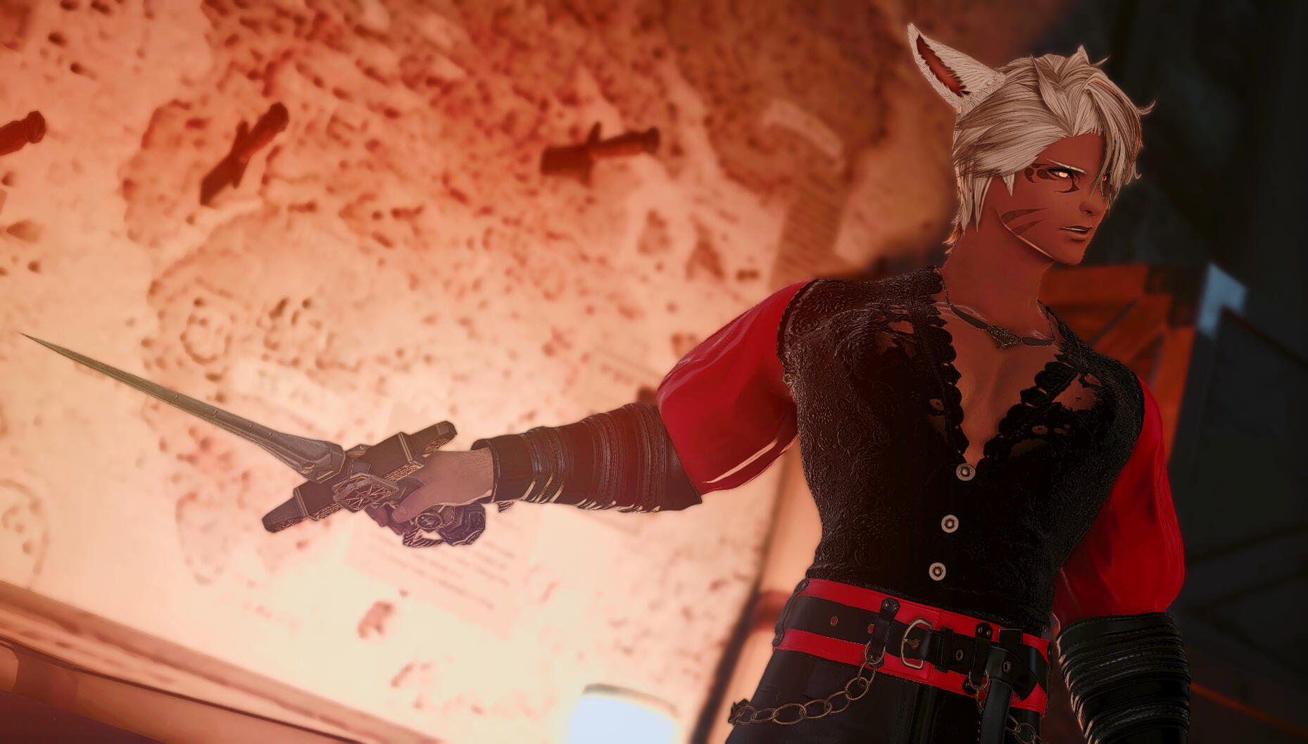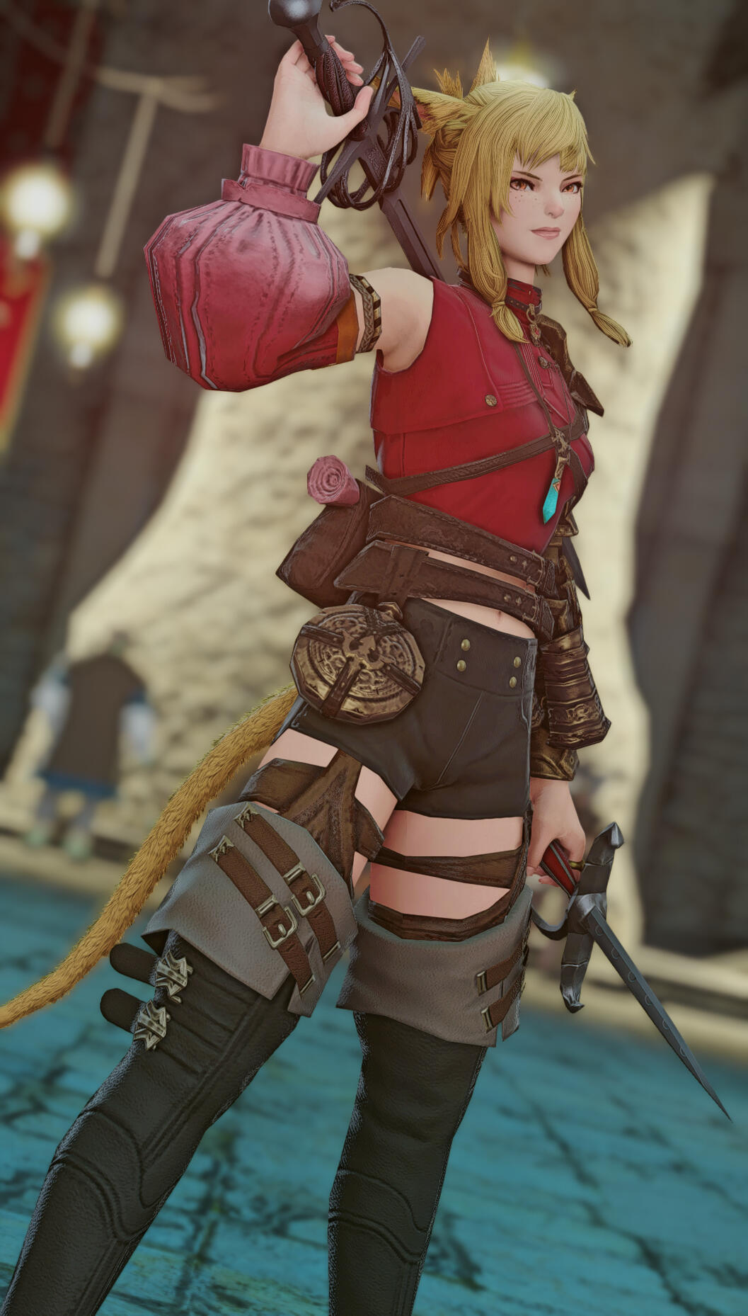 H'lynna let a life of crime all over Eorzea during her younger years. Growing up without parents after the calamity, she was taken in by a Maelstrom Soldier, Eliswyn. They didn't have much considering "Eli" could barely support the young miqo'te, but enough to afford her a dress or two. H'lynna knew then that she had to take measures into her own hands. If not for herself, then merely to help out the guardsman that took her in when no one else would.She would sneak out at night, heisting local establishments to turn over some gil.